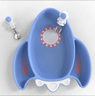Πιάτο Σιλικόνης με Κουτάλι/Πιρούνι – Διαστημόπλοιο Μπλε