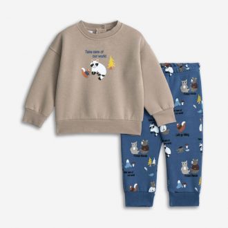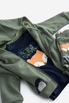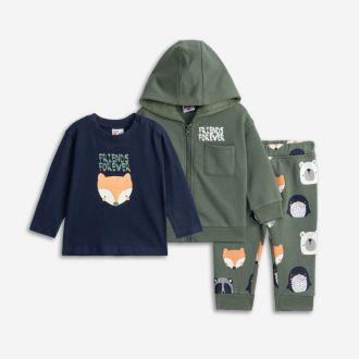 Φόρμα 3 τεμάχια φούτερ ζακέτακι χακι/μπλε/ανοιχτο