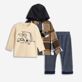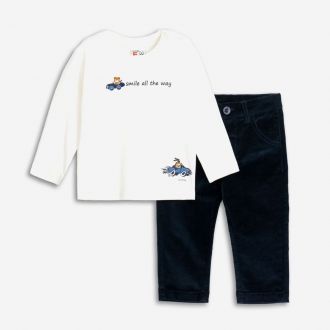 Σετ 2 μπλούζες και παντελόνι κοτλέ εκρου/μπορντω/μπλε
