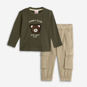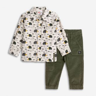 Πουκάμισο παντελόνι κοτλέ μπεζ/χακι