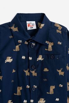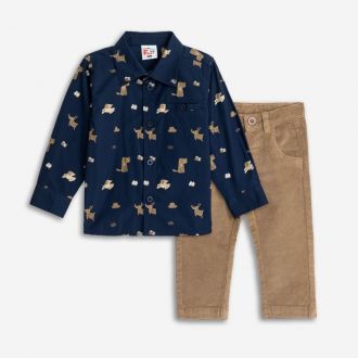 Πουκάμισο και παντελόνι κοτλε μπλε/κακαο