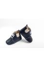 από μπλε δέρμα με εκρού λάστιχο.