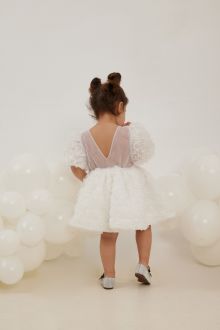 Ένα φόρεμα που συνδυάζει κομψότητα και παιδική αθωότητα, ιδανικό για βαπτίσεις, γιορτές και ιδιαίτερες περιστάσεις.
